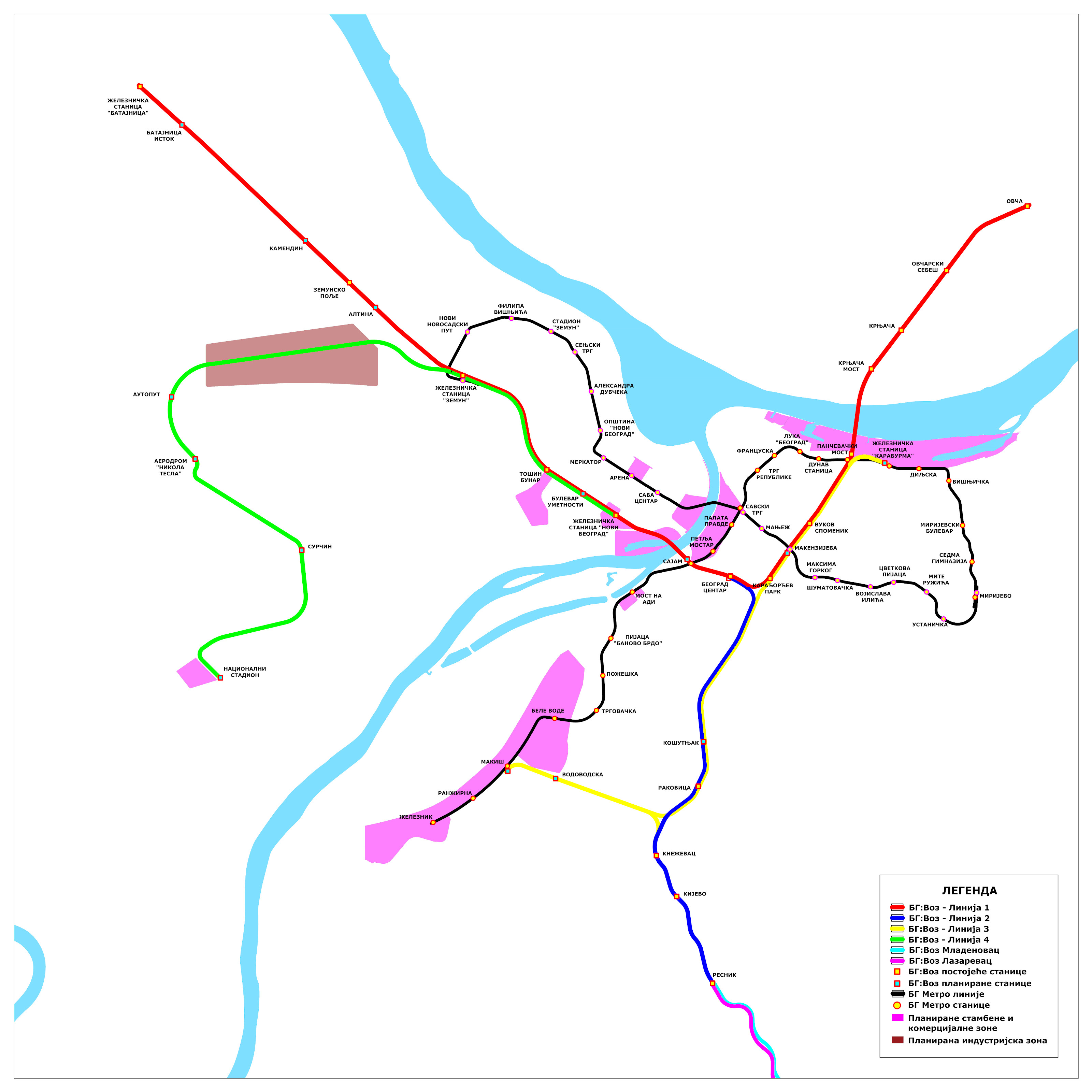 The Urban Transport Master Plan of Belgrade, which was adopted by the City Assembly of the City of Belgrade, defines the routes of the future two metro lines and four urban BG:voz lines.