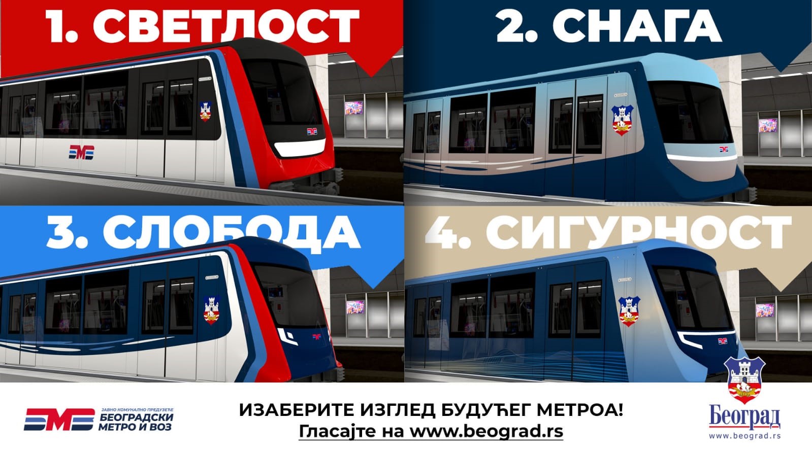 У току је гласање за изглед метро возова, које траје до 15.09.2021 године. Грађани могу да бирају један од четри понуђена изгледа. Гласа се на сајту Града Београда, www.beograd.rs и путем Беоком апликације.