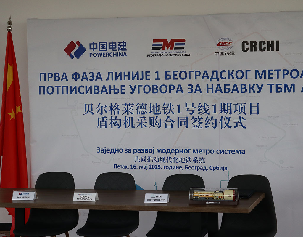 Уговор су потписали представници две реномиране кинеске компаније: Хан Џипинг, руководилац пројекта метро Линије 1 у име компаније PowerChina, и Цао Ђианфенг испред компаније CRCHI (енг. China Railway Construction Heavy Industry Corporation Limited), у присуству Андреје Младеновића, директора ЈКП „Београдски метро и воз“. Овај догађај представља значајну прекретницу у реализацији једног од највећих и најзначајнијих инфраструктурних пројекта у Србији – изградњи модерног метро система у Београду. Андреја Младеновић, директор ЈКП „Београдски метро и воз“ истакао је овим поводом: „Данашње потписивање уговора је суштински корак ка уласку у фазу конкретних радова на терену. Набавка ТБМ машина значи да смо спремни за ископ тунела и реализацију метроа какав Београд заслужује. CRCHI је највећи светски произвођач ових машина, а тренутно је у Европи ангажовано више од 15 кртица на разним инфраструктурним пројектима“. Хан Џипинг навео је да су партнери из PowerChina поносни што имају прилику да учествују у изградњи првог метро система у Београду и у региону. „Данашње потписивање је окосница извођачких радова и увод у припрему изградње метроа. Наш циљ је да оправдамо указано поверење, оснажимо и побољшамо функционалност саобраћаја, а све уз подршку Владе Републике Србије, ЈКП „Београдски метро и воз“ и пројектних менаџера, али и уз разумевање локалног становништва.“, додао је Џ. Хан. Цао Ђианфенг из CRCHI присутнима је представио резултате и могућности ове компаније као глобалног лидера у производњи ТБМ-а. „Машине које испоручујемо представљају најсавременију технологију у области тунелског инжењеринга. Сигурни смо да ће допринети ефикасном и безбедном ископу метро тунела, а рад на ископавању тунела за будући метро у Београду за нас ће бити један од приоритених пројеката. Важно је да кажем и да смо веома посвећени поштовању свих техничких, еколошких и безбедносних стандарда, са циљем да овај пројекат буде пример добре праксе.“ закључио је Ђ. Цао. ТБМ машине за београдски метро биће тешке 2.000 тона и пречника од скоро 10 метара и представљају врхунац савремене технологије у области подземне изградње. Њихова испорука и монтажа очекују се у априлу и јуну 2026. године. Ове тзв. „кртице“ раде са високим степеном прецизности, минималним утицајем на околину и уз висок ниво безбедности током рада. Компаније PowerChina и CRCHI овим уговором обједињују своје глобално искуство и технолошко лидерство како би допринеле изградњи ефикасног, безбедног и поузданог метро система у Београду, у складу са највишим међународним стандардима. Изградња метроа у Београду је од стратешког значаја за Републику Србију, јер ће допринети бољој повезаности, смањењу саобраћајних гужви и заштити животне средине. Потписивањем овог уговора, Град Београд је још један корак ближе уласку у друштво савремених европских метропола са развијеним системом градског превоза.