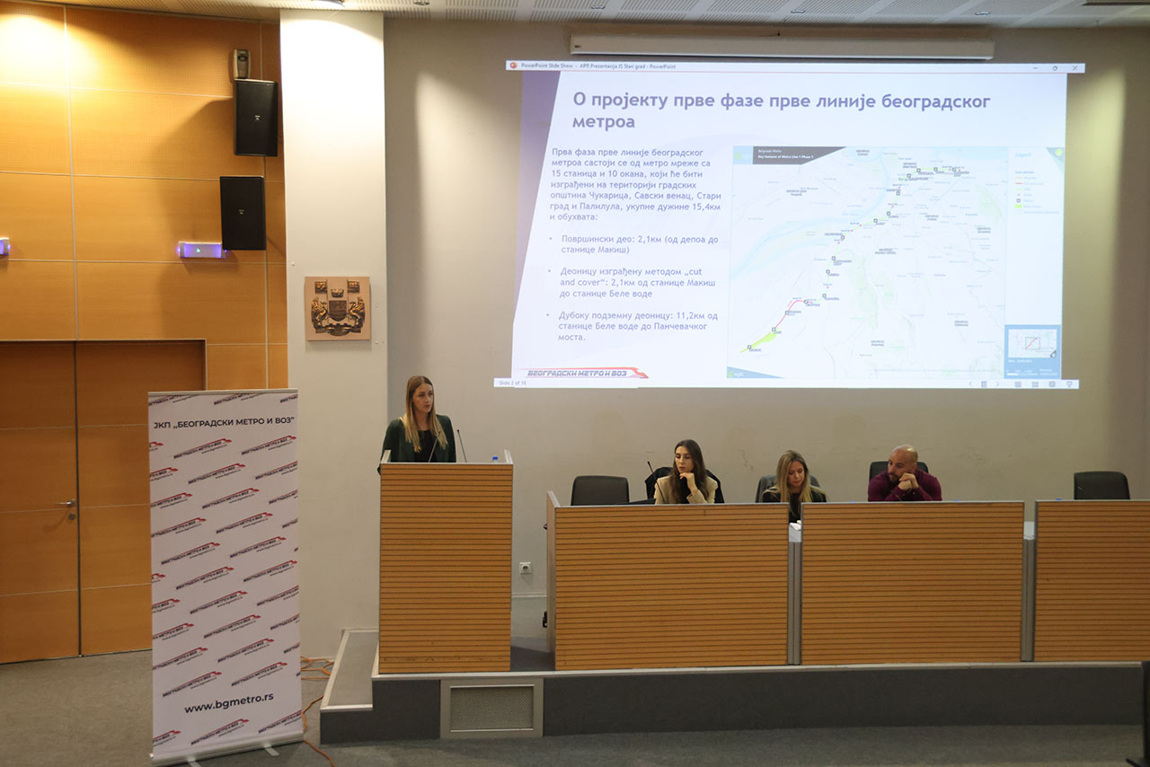 Акциони план расељавања за прву фазу прве линије представила је Јелена Славеска, директор Одељења за имовинско-правне послове и административне послове у ЈКП „Београдски метро и воз“ Београд. Том приликом изложени су сви релевантни аспекти – од поступка експропријације и правне заштите грађана, до мера подршке, временских рокова и механизама за жалбе и комуникацију.