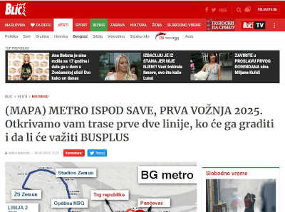 Blic: (MAPA) METRO ISPOD SAVE, PRVA VOŽNJA 2025. Otkrivamo vam trase prve dve linije, ko će ga graditi i da li će važiti BUSPLUS