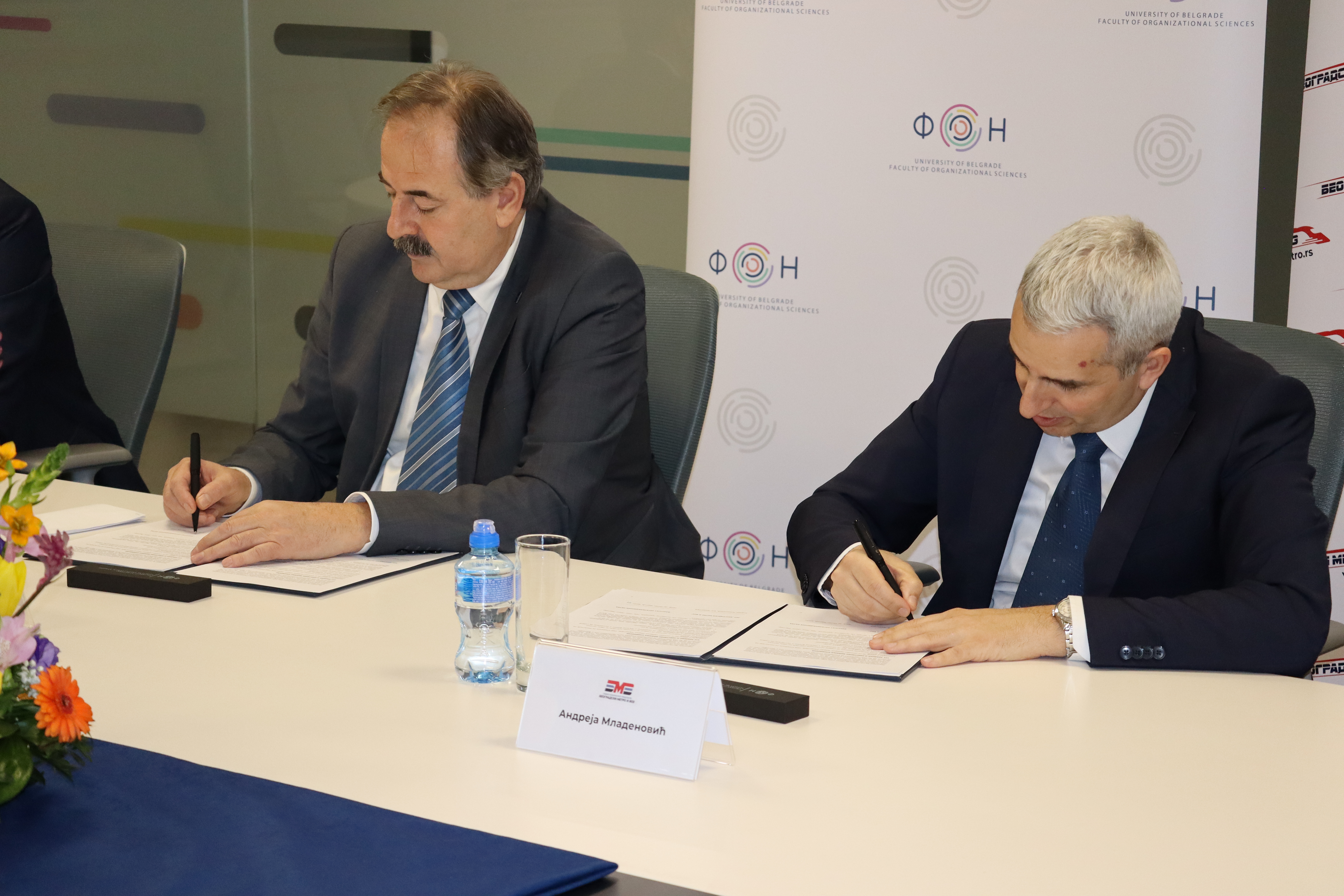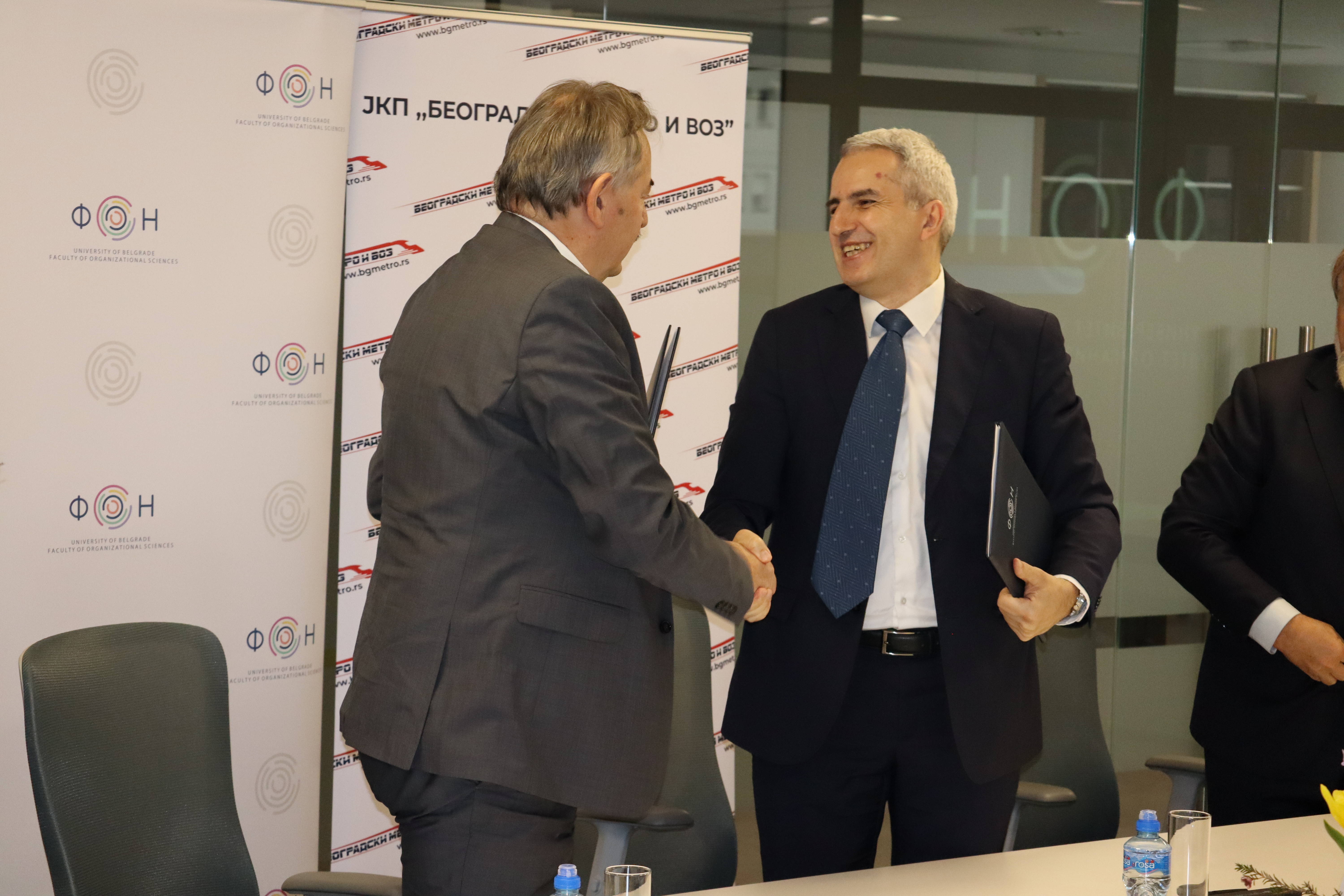 Sporazum o saradnji koji predviđa aktivno učešće studenata i nastavnog osoblja potpisan je juče između Fakulteta organizacionih nauka i JKP „Beogradski metro i voz”. Potpisivanjem ovog dokumenta formalizovano je učešće ove akademske institucije u projektu, u cilju unapređenja struke, inovacija i tehnološkog razvoja. Ovom prilikom na fakultetu je organizovana i prezentacija projekta izgradnje beogradskog metroa za studente i stručnu javnost. Studentima sa Katedre za industrijsko i menadžment inženjerstvo, pored osnova projekta, predstavljena je i BIM platforma – softversko rešenje za unapređenje poslovnih procesa izgradnje metroa.